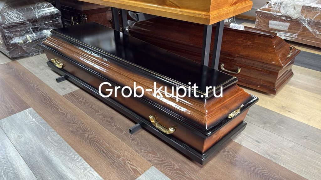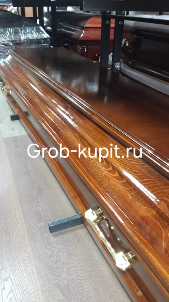 Фактурный четырехгранный полированный гроб АБ-4: изготовлен из массива сосны и МДФ. Данный гроб представлен в трех цветах: светлый, темный, орех. Гроб АБ4 имеет плавное расширение от низа гроба к верхней его точке. В стоимость гроба АБ 4 уже включены: 4 ручки для переноса гроба, внутренняя обивка основания и крышки гроба белой тканью, 2 закрутки крышки гроба для её фиксации. Снаружи гроб покрывают защитными слоями лака. У лакированного гроба АБ-4 остается естественный оттенок, поэтому в реальности он может немного отличаться от фотографии. Вид натурального дерева и применение лаков различных оттенков создает индивидуальный дизайн. Цена гроба АБ-4 не высока т.к. мы продаем гробы по цене без переплат.